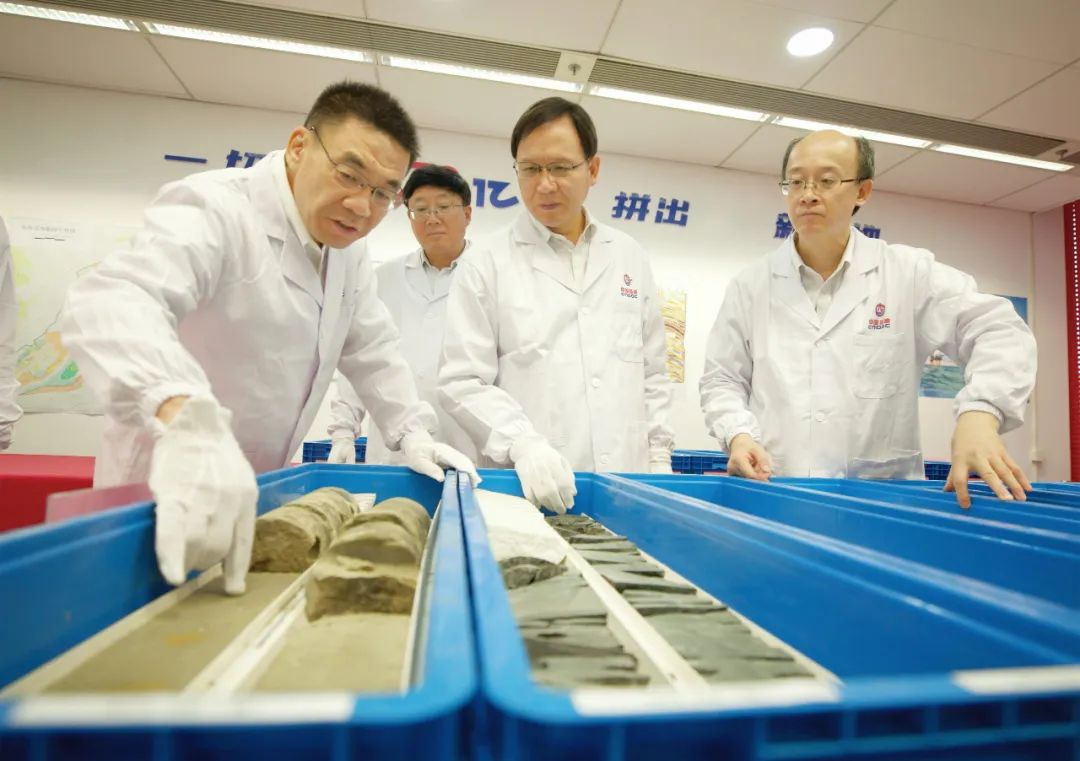 在岩心观察室,张传江仔细观察,询问取样和科研历程,鼓励科研工作者坚持不懈创新理论认识,以理论创新和技术进步推动勘探开发不断打开新局面。